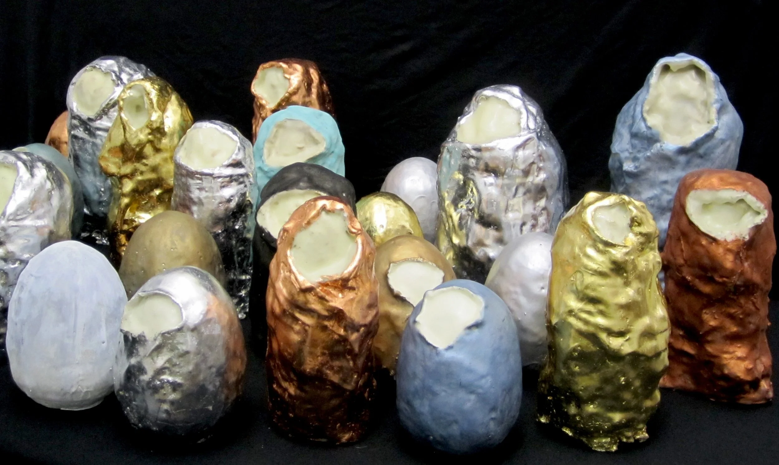 Named after the Kichwa (Ecuadorian Quechua) word for “baby” or “child,” the Guagua (Wawa) sculptures represent the essence of our shared humanity. Like a tabula rasa, they embody a pre-socialized state, open, vulnerable, and full of potential. Inspired by my childhood memories of Indigenous mothers in the Andes carrying their swaddled babies on their backs, these figures honor matrilineal strength and the universal experience of being held and carried across generations, geographies, and traditions.