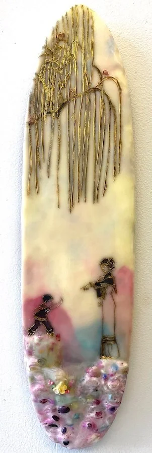 Encaustic and mixed media on skimboards